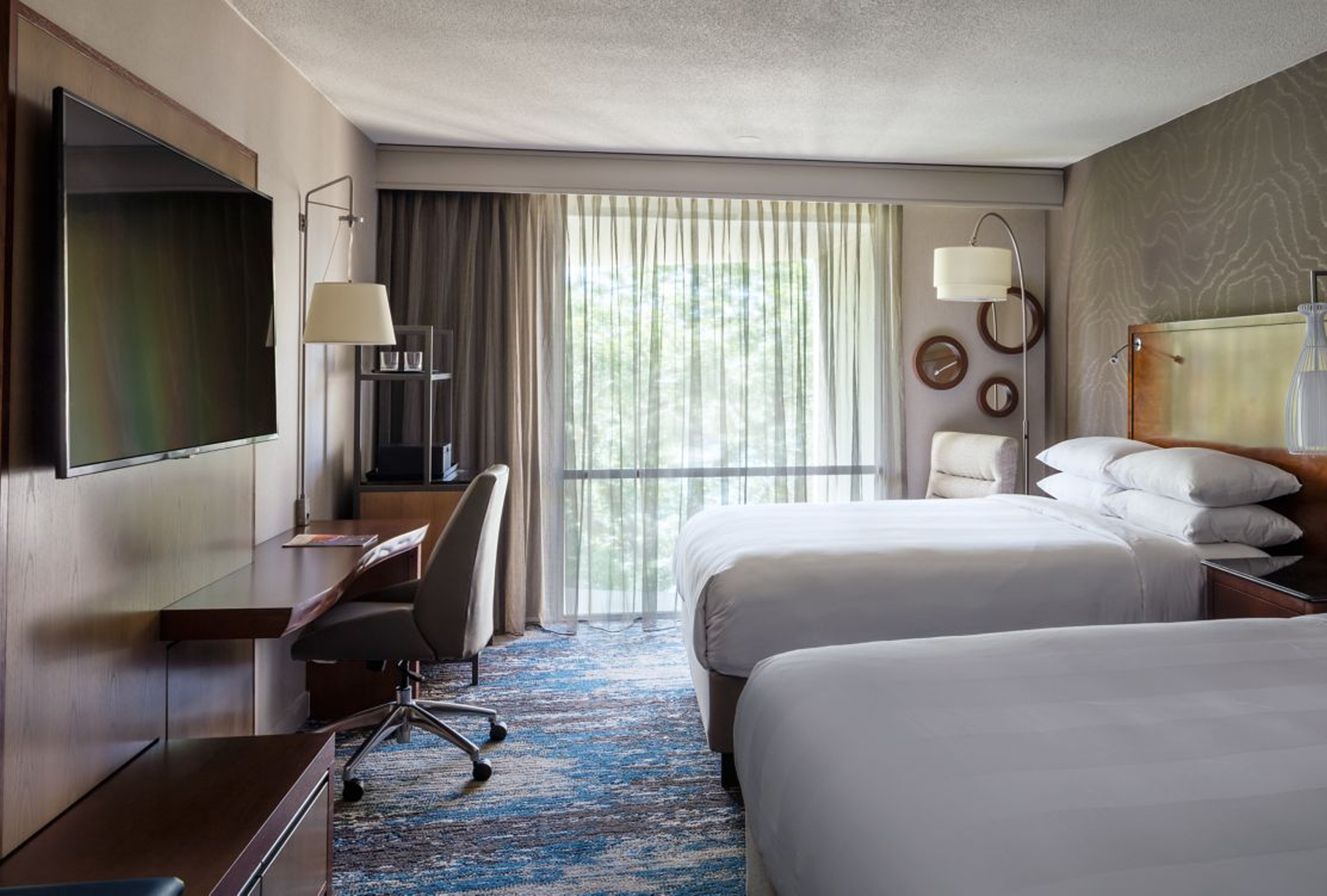 The Boston Marriott Newton features 430 rooms across 7 stories, offering amenities for comfort and convenience.